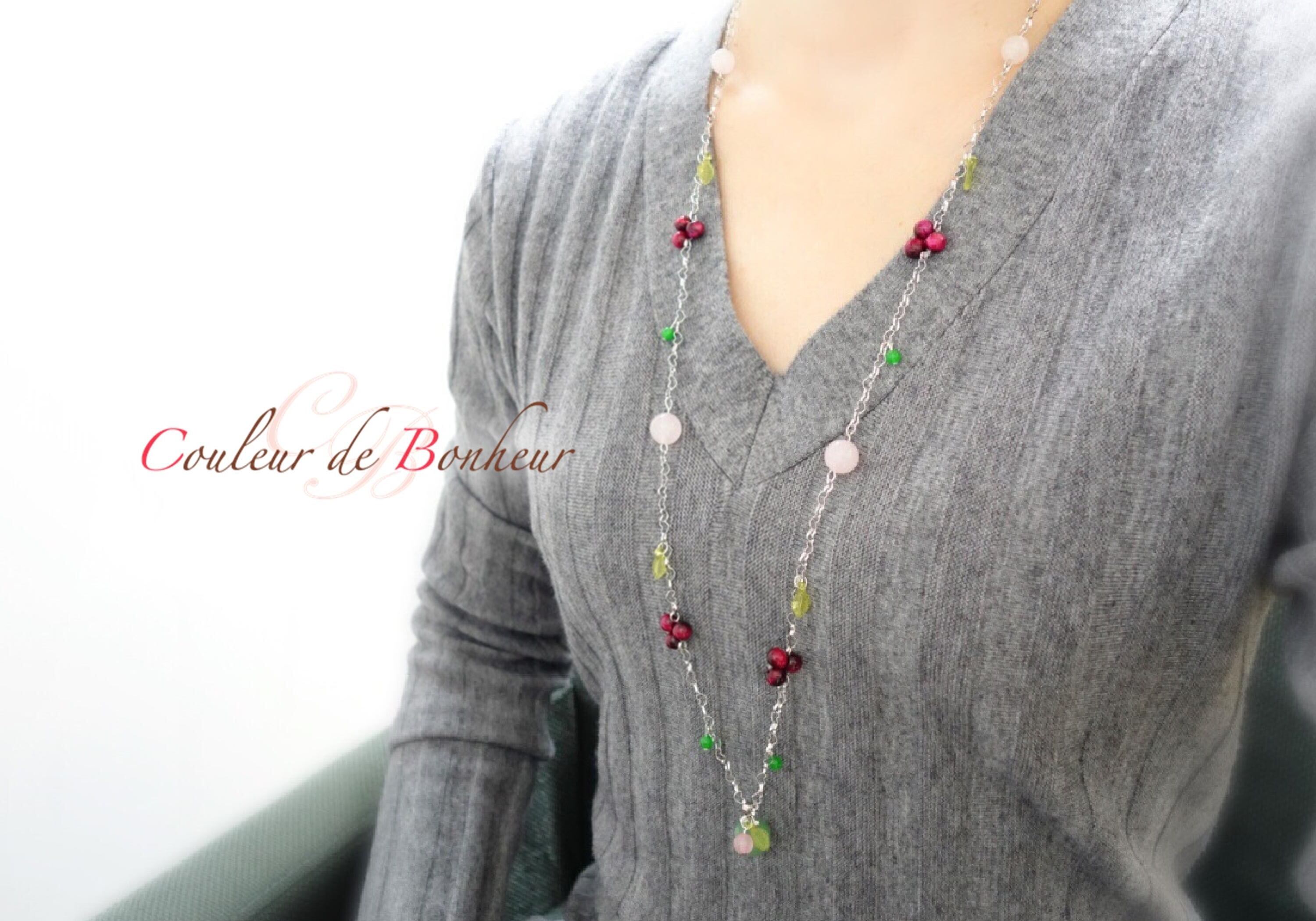 天然石果実のロングネックレス ロジウムコーティング