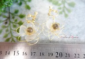 ワイヤーフラワーとクリアーなフラワーモチーフを立体的に重ね、穏やかな配色を施した軽やかで抜け感のあるスイングイヤリング。