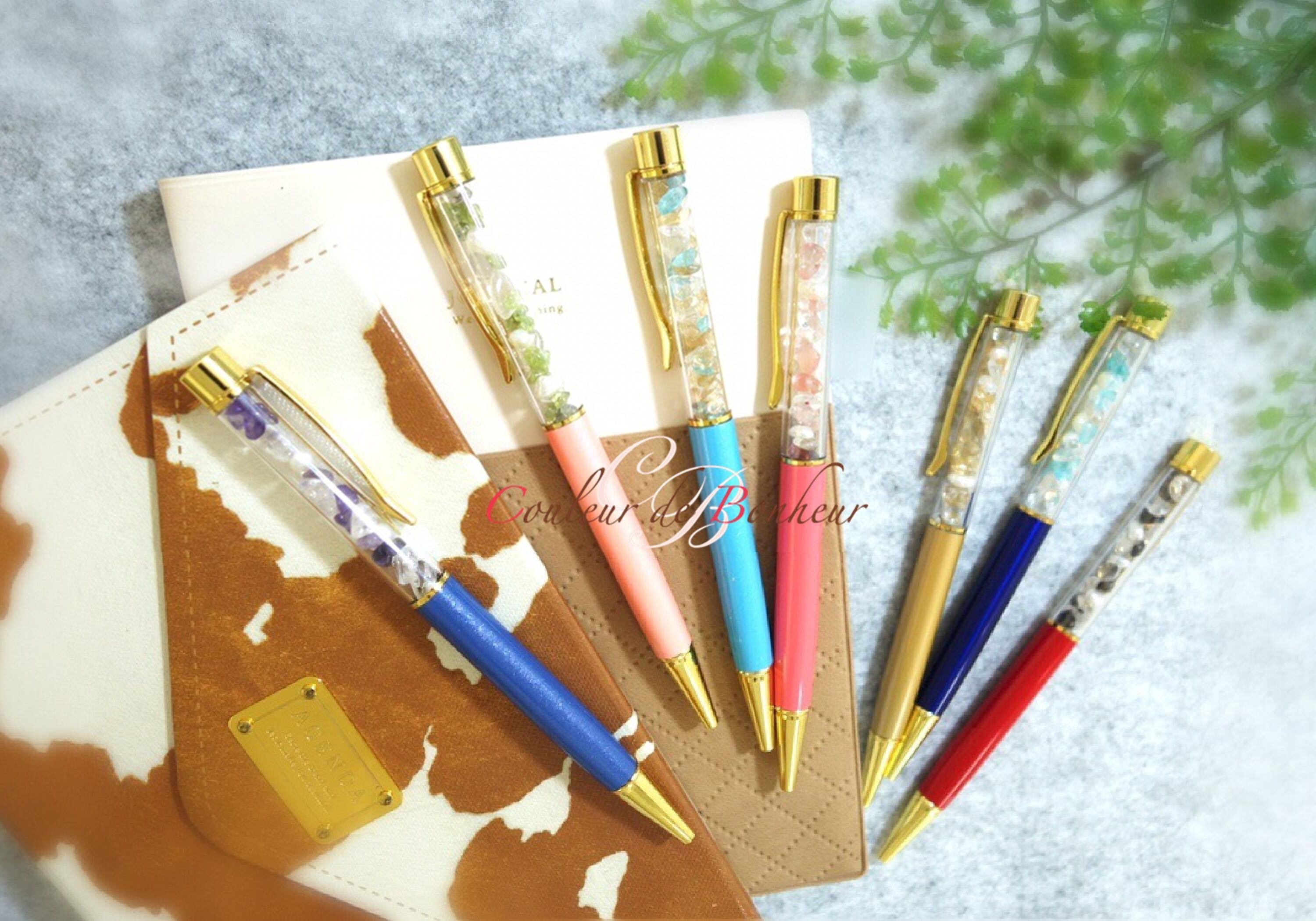 天然石ならではの美しい煌めきとバランスの良い配色を施したボールペン。